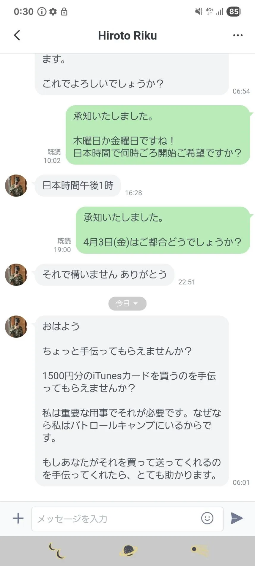 先日、お問い合わせいただいた方と公式ラインでやり取りしていました。